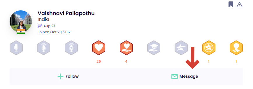 2. You can also click the Message button from the user's member card that shows in Featured Leaders, Newest Members, and in search results.