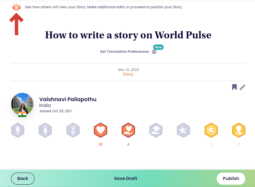 Congratulations! You have published your first story on World Pulse!