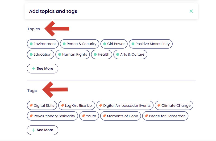Pick the topics and tags that relate most closely to your story and click next.