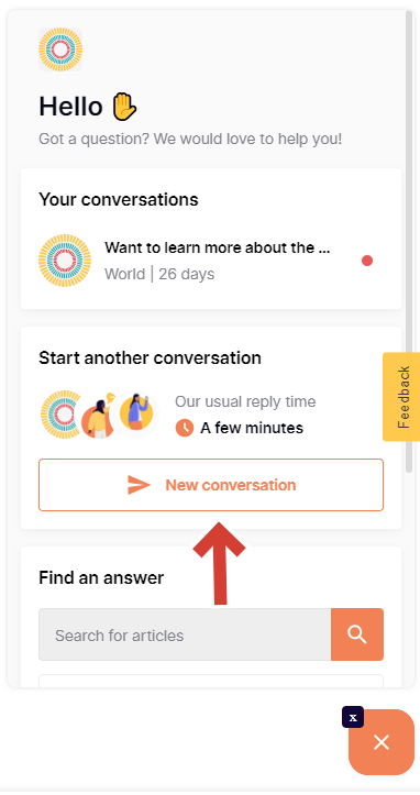 Click on "New conversation" to send in a message. Be prepared to share with the team: