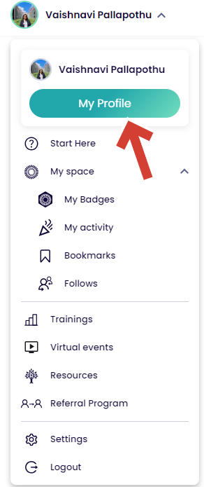 1. Click on your profile picture. Then, click on 'My profile' from the drop down menu.
