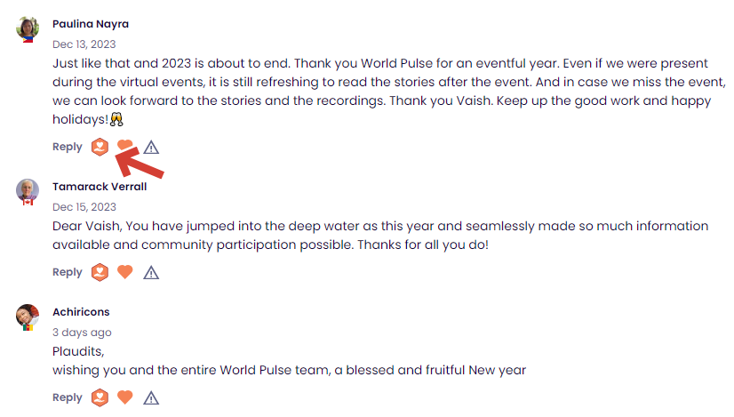 If you receive a comment that you'd like to mark as an affirmed comment on your story, click the Affirmed icon. In addition to showing your community how to relate, we'll also let the commenter know that their comment was special to you.